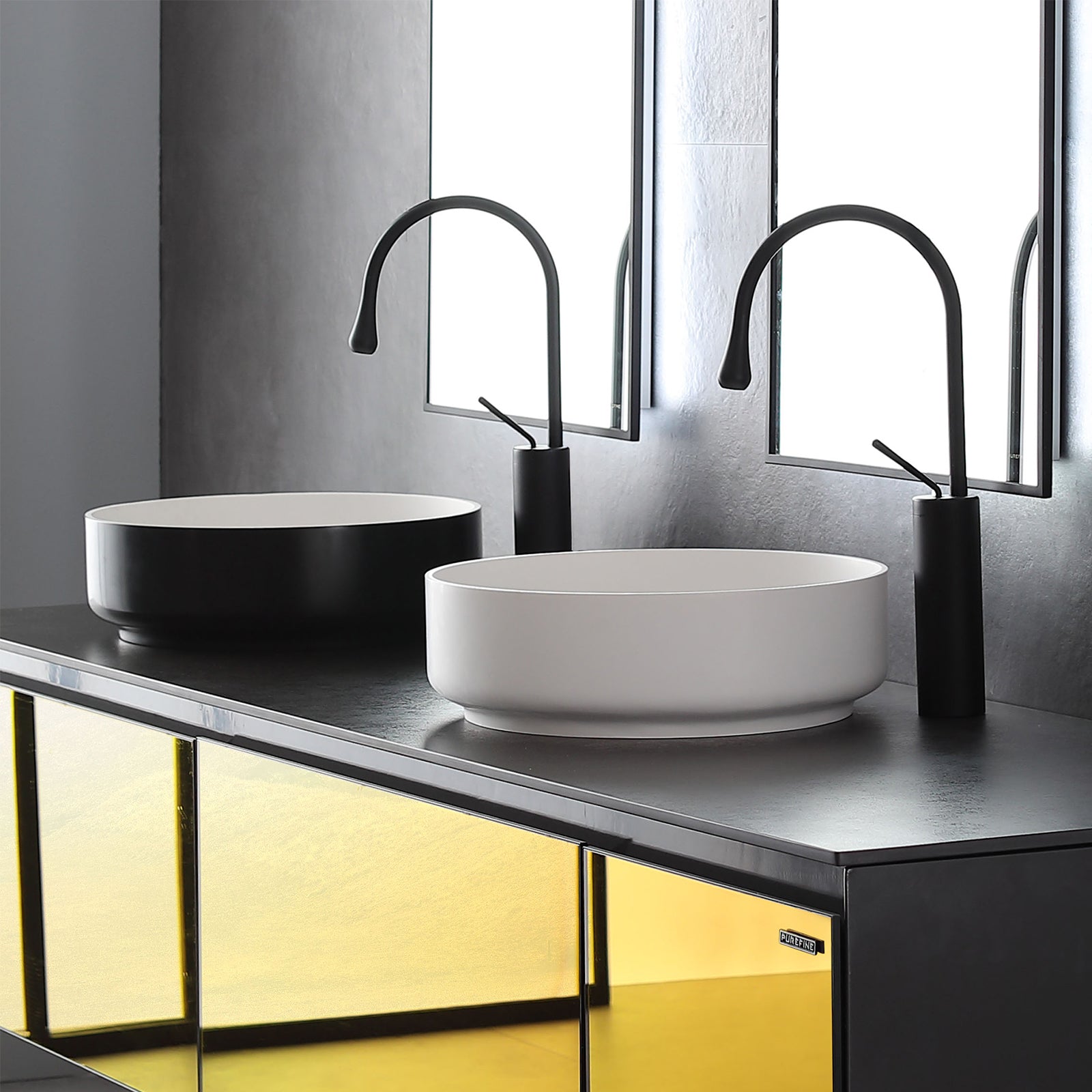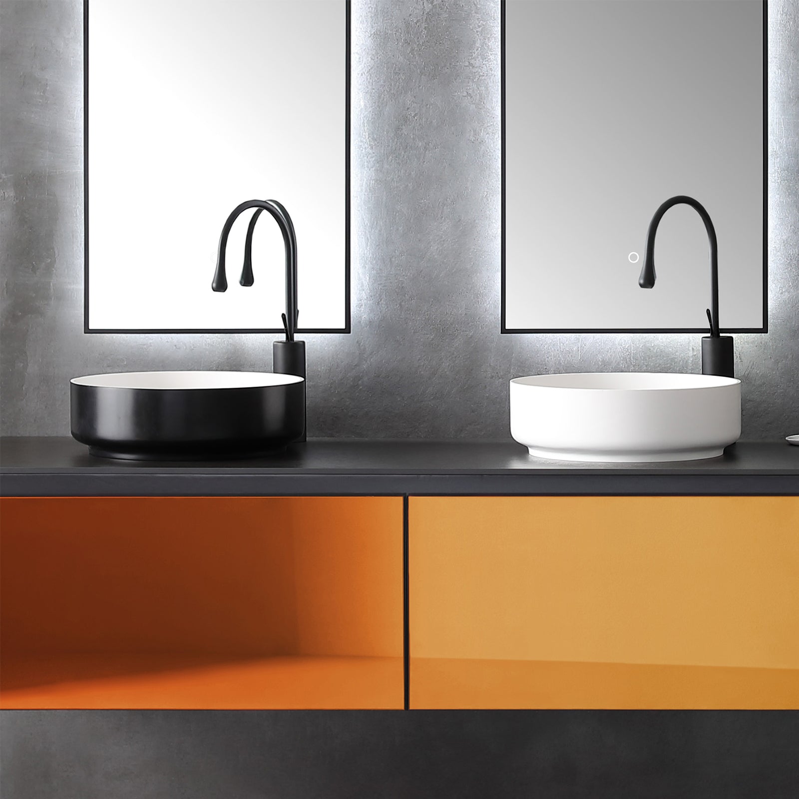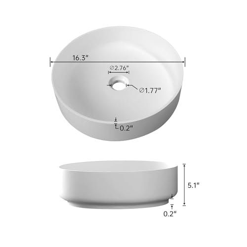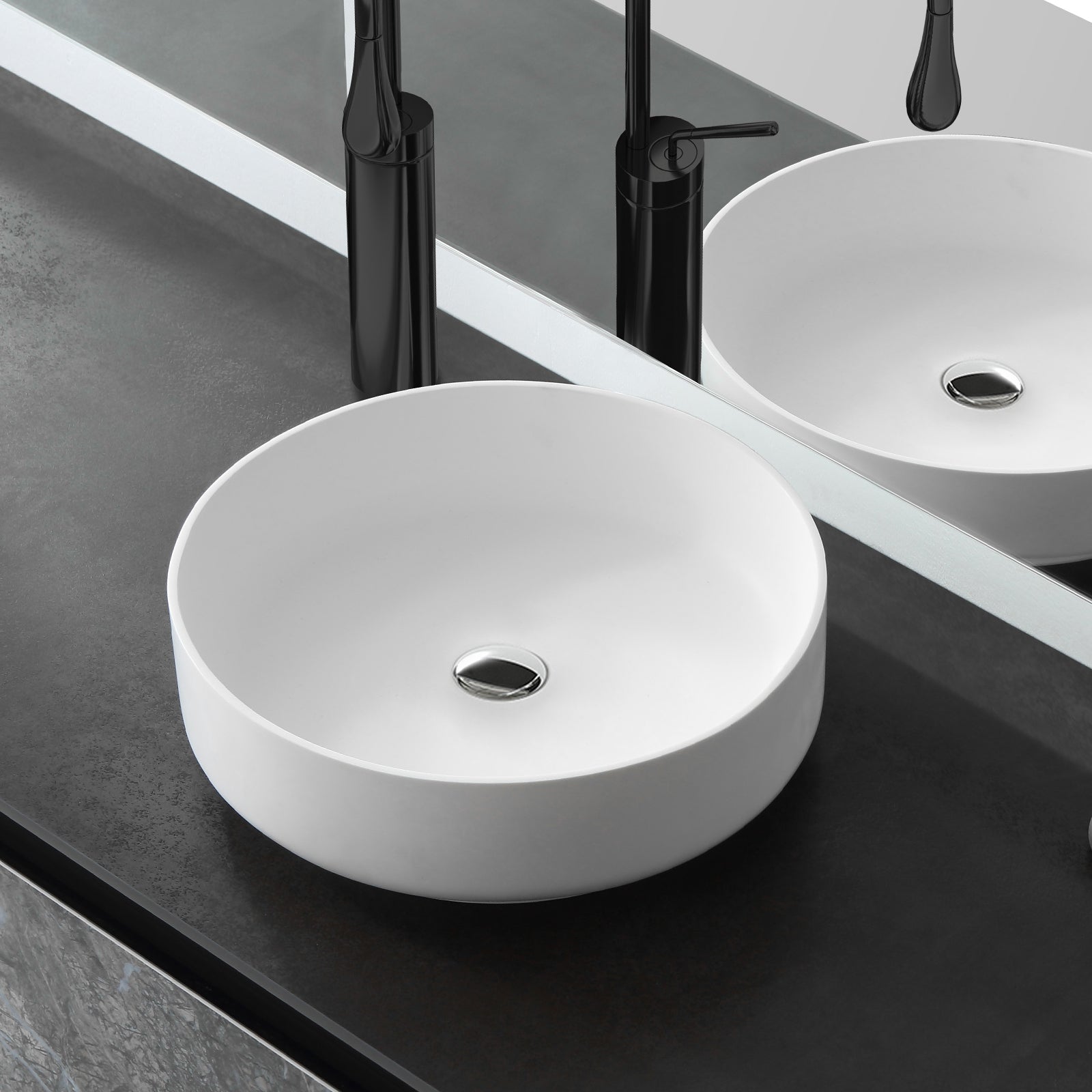 Lasaideal 16" White Round Resin Stone Bathroom Sink