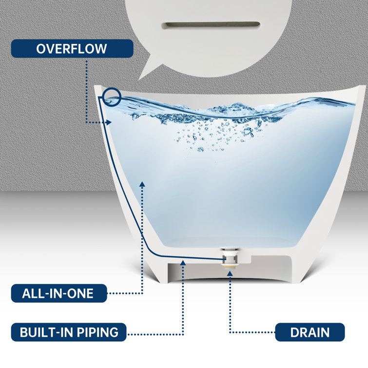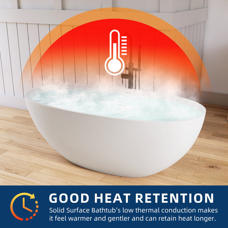Crafted from 100% eco-friendly handmade Resin Stone, non-porous, 100% fade-resistant, natural stone feel,ensuring durability and strength while remaining non-poisonous. No worry about minor scratches or damage or stubborn stains thanks to its special repairable function. No-slip matte finish and a silky-smooth texture. Our tub conforms to the body's natural contours, Sloped lumbar support offers extra comfort, providing exceptional lumbar and head support for extended relaxation. Its excellent heat retention ensures a long, soothing soak, akin to being cocooned in luxury. Its corner-friendly design makes it ideal for both indoor and outdoor settings, Advanced lightweight pure white stone resin keeps bathwater warm and cozy, while durably resisting any scratches or staining. This freestanding tub is what bathing dreams are made of. Includes pop-up drainer, the bottom outlet is in the center, and the drain hose (not included in the price)