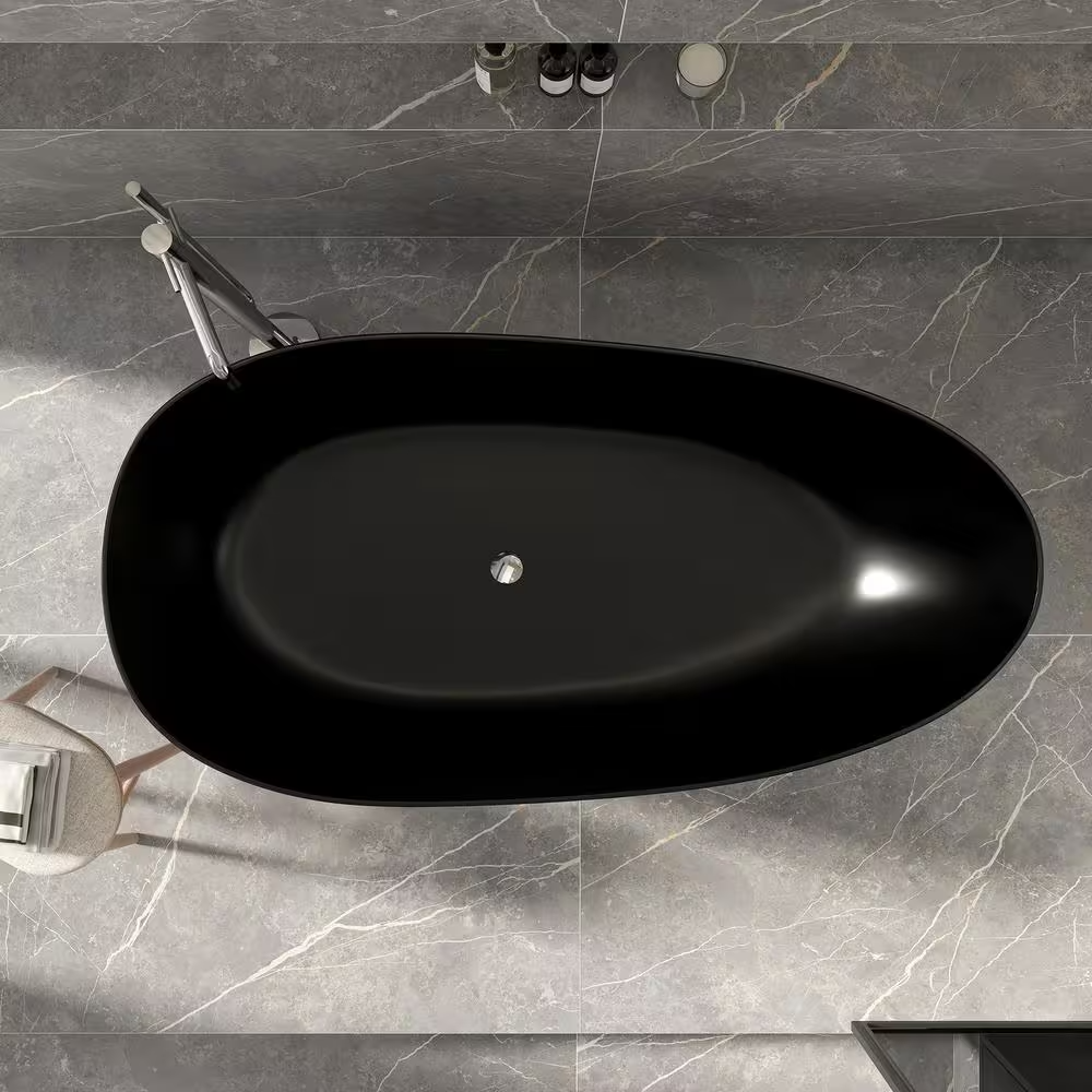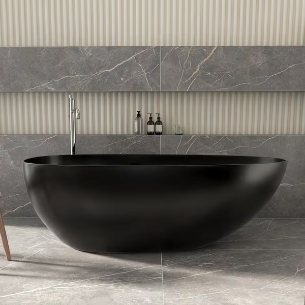 Lasaideal 67'' Stone Resin Solid Surface Matte Flatbottom Black Freestanding Soaking Bathtub
