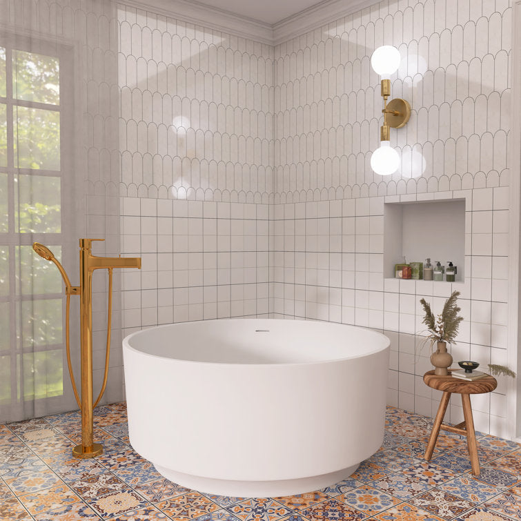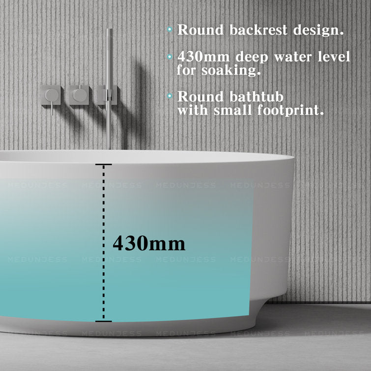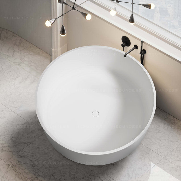 Lasaideal 49" Eco-Friendly Round Resin Stone Bathtub