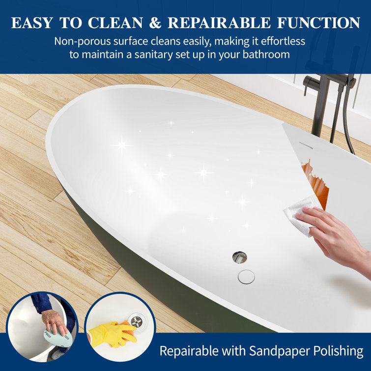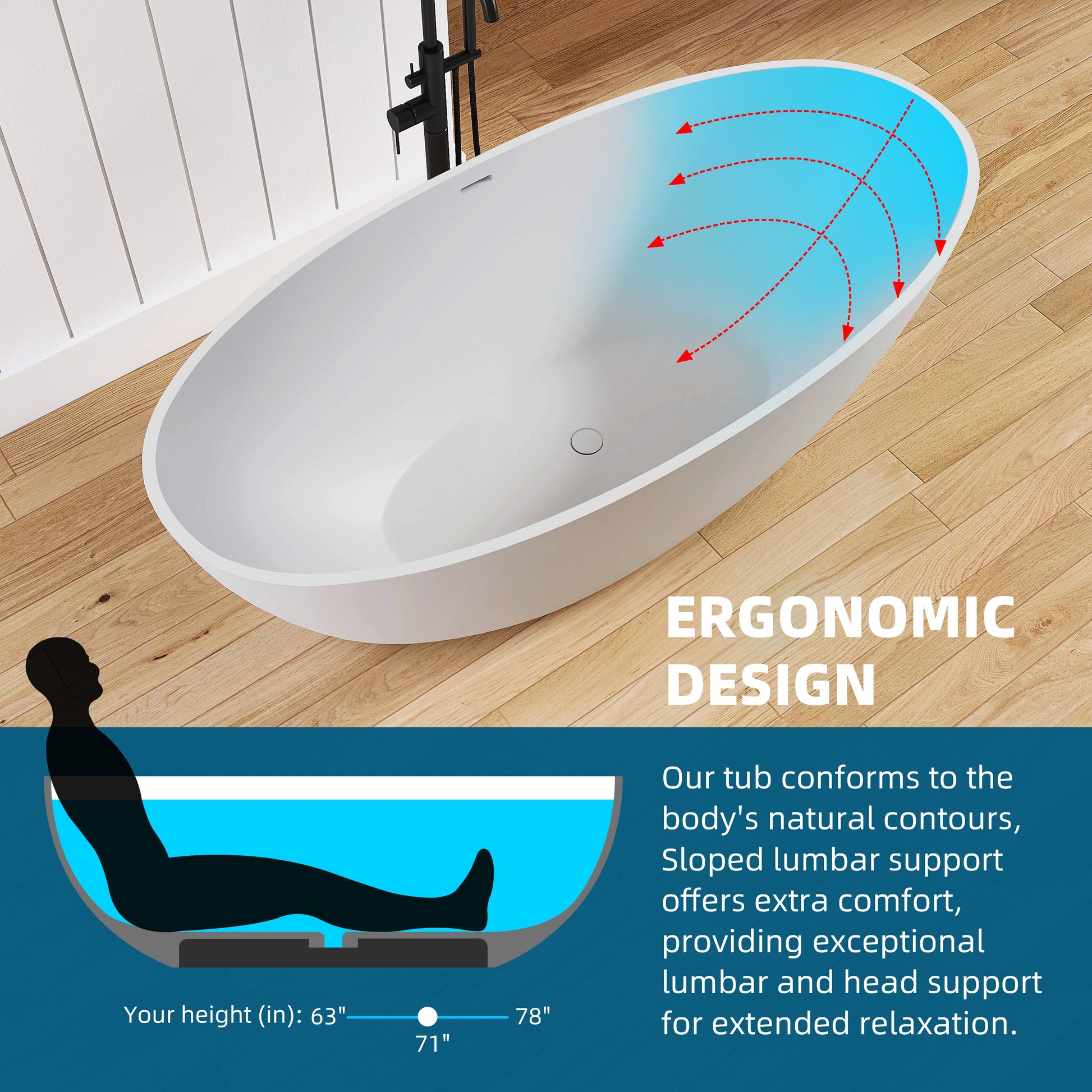Lasaideal 65'' Oval Luxury Resin Stone Soaking Tub